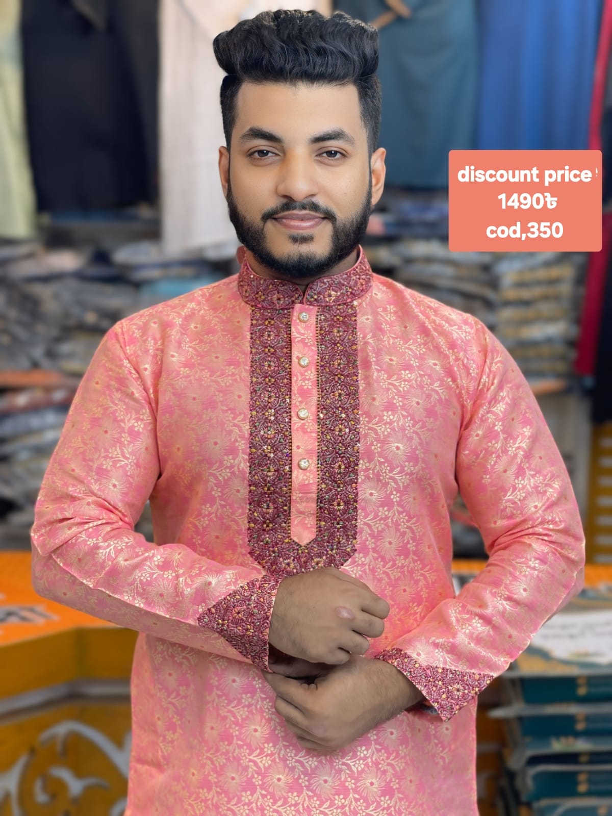 ( Code- 123 ) প্রিমিয়াম চায়না মাইক্রো-স্ট্রেচ ‘ভাঙচুর’ কটন পাঞ্জাবি