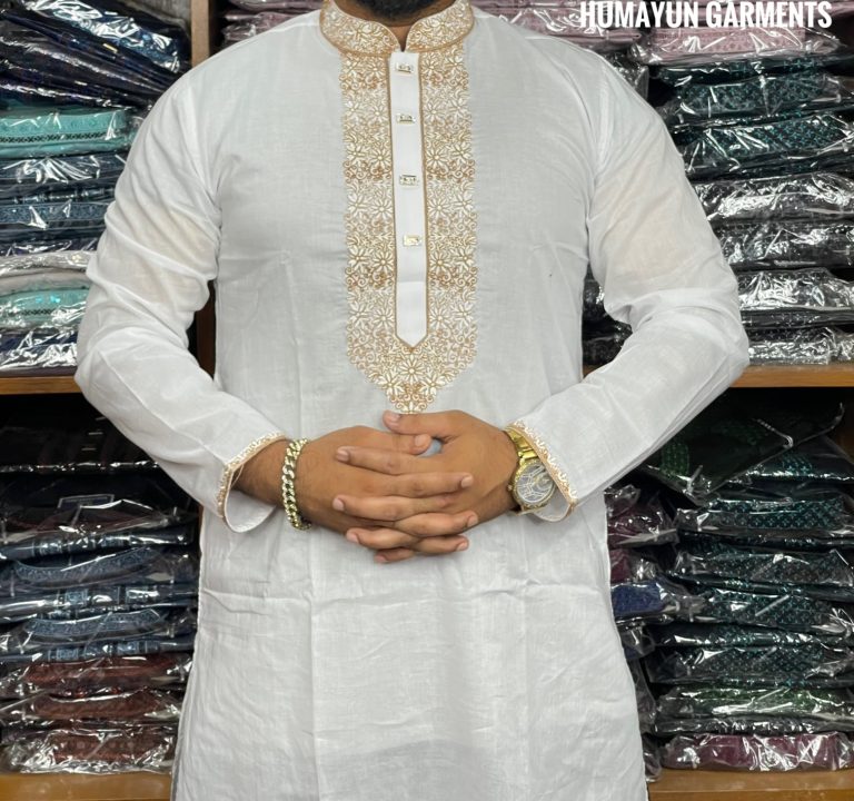 [ Code: D-101 ] প্রিমিয়াম অরিজিনাল ধুতি কটন এমব্রয়ডারি পাঞ্জাবি