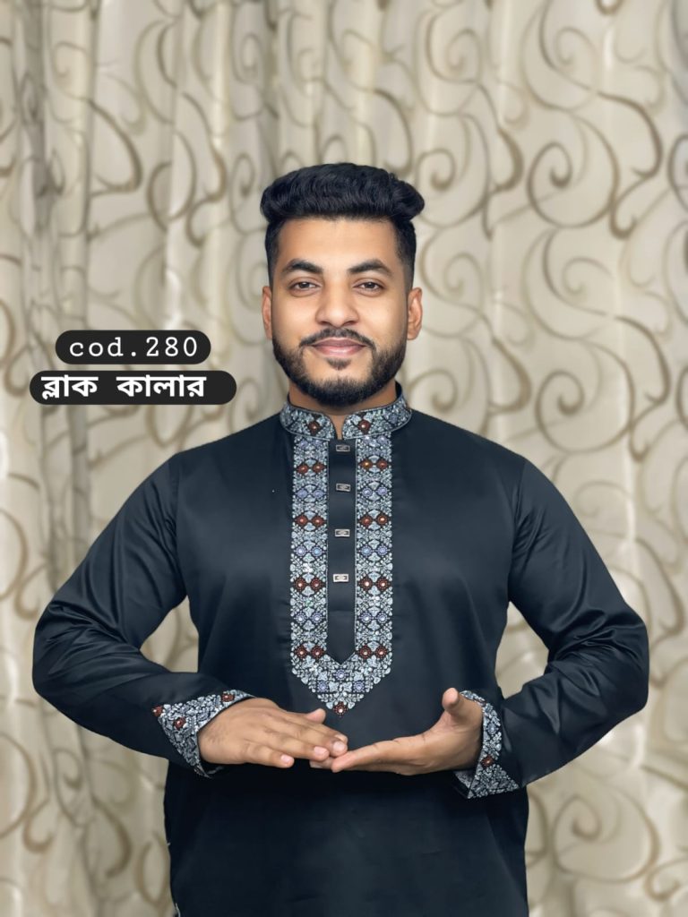 ( Code- 280 ) প্রিমিয়াম সাটন কটন সিকুয়েন্স এমব্রয়ডারি পাঞ্জাবি