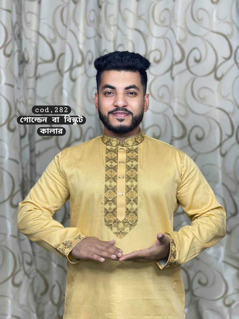 ( Code- 282 ) প্রিমিয়াম সাটন কটন সিকুয়েন্স এমব্রয়ডারি পাঞ্জাবি