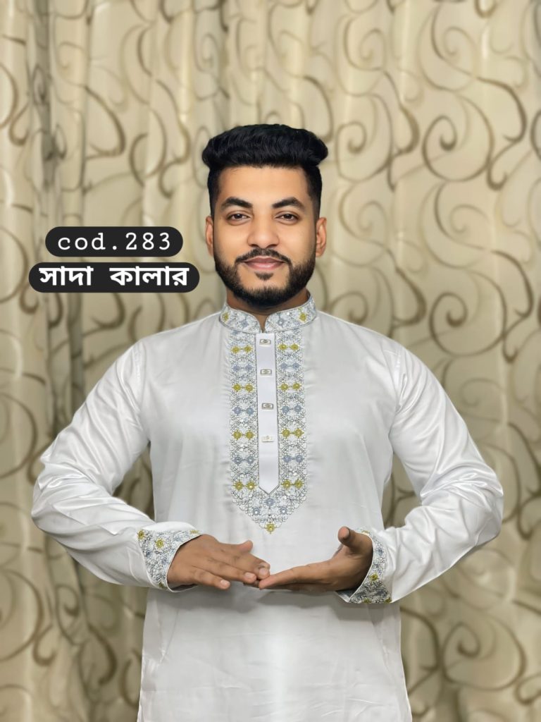 ( Code- 283 ) প্রিমিয়াম সাটন কটন সিকুয়েন্স এমব্রয়ডারি পাঞ্জাবি