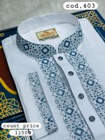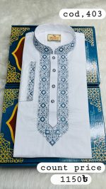 [ Code: 403 ] প্রিমিয়াম ধুতি কটন সিকোয়েন্স এমব্রয়ডারি পাঞ্জাবি